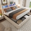 Das Polsterbett mit LED-Beleuchtung und USB-Steckdose bietet Ihnen nicht nur einen stilvollen Schlafplatz, sondern auch praktischen Stauraum. Das Kopfteil mit Ablagen und der hydraulische Stauraum ermöglichen eine einfache Organisation Ihrer persönlichen Gegenstände. Der hochwertige Leinenstoff sorgt für Langlebigkeit und ist schmutzabweisend. Mit einem stabilen Metallrahmen garantiert dieses Doppelbett für Erwachsene eine hohe Stabilität und einen ruhigen Schlaf.