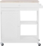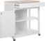 Praktischer Servierwagen im modernen Landhausstil in Weiß. Ideal für die Küche oder das Esszimmer, bietet er vielseitige Ablageflächen und Stauraum. Die obere Fläche eignet sich perfekt für Dekoration oder als Arbeitsplatte. Mit einer geräumigen Schublade und einem Schränkchen für Geschirr und Gläser ist dieser Rollwagen eine funktionale Lösung für jeden Raum.