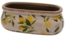 Der ovale Blumentopf „Zitrone“ von Clayre & Eef bringt mit seiner sonnengelben Glasur und dem verspielten Zitronenmotiv mediterranes Flair in Ihre Wohnräume. Mit einem Maß von 23 x 10 x 9 cm (B x T x H) ist dieser handbemalte Keramiktopf ideal für Küchenkräuter, kleine Blüher oder Zimmerpflanzen. Genießen Sie Ihre Pflanzen und Blumen mit Stil, während der Topf für gute Laune sorgt.
