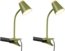 Moderne und praktische LED Klemmleuchten im 2er SET in Grün. Mit einer Höhe von 33 cm bis maximal 46 cm und einem Schirmdurchmesser von 9,5 cm bieten sie flexible Beleuchtungslösungen. Der robuste Kunststoffkorpus und die holzfarbene Applikation mit integriertem Ein-/Ausschalter sorgen für wohnliche Akzente. Der biegsame Schwanenhals ermöglicht eine individuelle Ausrichtung, während das fest verbaute LED Modul mit 4,5 Watt und 500 Lumen in Warmweiß für optimale Lichtverhältnisse sorgt.