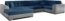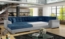 Damario ist ein geräumiges und stilvolles Ecksofa in Blau mit den Maßen 338 x 189 x 78 cm. Die bequeme Sitzfläche aus strapazierfähiger Wellfeder und elastischem T30-Schaumstoff bietet hohen Komfort und ist resistent gegen Beschädigungen. Mit der praktischen Schlaffunktion und einer Fläche von 275 x 126 cm ist es ideal für Übernachtungsgäste. Die elegante Form und die mitgelieferten Zierkissen runden das Gesamtbild ab.