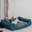 Orthopädisches Hundebett ELLEN in Dunkelbeige (110x90 cm) bietet Ihrem Hund optimalen Schlafkomfort. Die Matratze kombiniert PUR-Schaum und VISCO-Formgedächtnisschaum für eine gelenkschonende Liegefläche. Der Bezug aus hochmodernem Polsterstoff ist langlebig und pflegeleicht. Die atmungsaktive Unterseite sorgt für kontinuierliche Belüftung, während die stabile Randfüllung aus Schaumflocken zusätzlichen Halt bietet.
