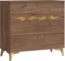Elegante FORTE Kenyatta Kommode mit 3 Schubladen, die durch ihr edles Design in Colonial Eiche Holzdekor mit goldenen Akzenten besticht. Mit den Maßen 89,9 cm Breite, 85,8 cm Höhe und 41,3 cm Tiefe bietet sie viel Stauraum und fügt sich perfekt in Schlafzimmer, Flur oder Wohnbereich ein. Die kratz- und fleckenresistenten Oberflächen sorgen für eine pflegeleichte Nutzung.
