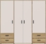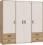 Der Forte MOKKARO Kleiderschrank bietet mit seinen 4 Drehtüren und 4 Schubladen viel Stauraum für Ihre Kleidung. Der Schrank ist aus Holzwerkstoff gefertigt und präsentiert sich in einem ansprechenden Sand/Mauvella Eiche Dekor. Mit einer Breite von 205,9 cm, einer Höhe von 200,1 cm und einer Tiefe von 52,7 cm ist er ideal für die Schlafzimmermodernisierung. Die hochwertige Verarbeitung sorgt für eine reibungslose Handhabung und eine einfache Montage.