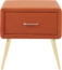 Moderner Nachttisch FLAYAT aus hochwertigem Samtstoff in Orange. Mit einer leichtgängigen Schublade und stabilen goldenen Metallbeinen bietet er ausreichend Stauraum und ein elegantes Design, das Ihre Einrichtung aufwertet. Gefertigt aus widerstandsfähigem Holz und 100% Polyester, ist dieser Nachttisch vielseitig einsetzbar – ob im Schlafzimmer, Wohnzimmer oder Eingangsbereich.