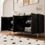 Präsentieren Sie Ihr Zuhause stilvoll mit dem i@home Sideboard. Diese elegante Kommode mit vier Türen in Holzstruktur-Optik und weiß-goldenen Akzenten bietet großzügigen Stauraum. Ausgestattet mit Soft-Close-Scharniere und verstellbaren Regalen, ist sie ideal für Wohnzimmer, Essbereich oder Schlafzimmer.