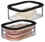 Die Mepal Modula Frischhaltedosen Wurst & Käse Set in Schwarz bietet eine praktische Lösung zur Aufbewahrung von Fleischwaren und Käse. Die rechteckige Aufschnittdose mit abgerundeten Ecken hat ein Volumen von 3x550 ml und die Käsedose ein Volumen von 2 Litern. Beide Dosen sind stapelbar, spülmaschinenfest und ermöglichen einen direkten Blick auf den Inhalt.
