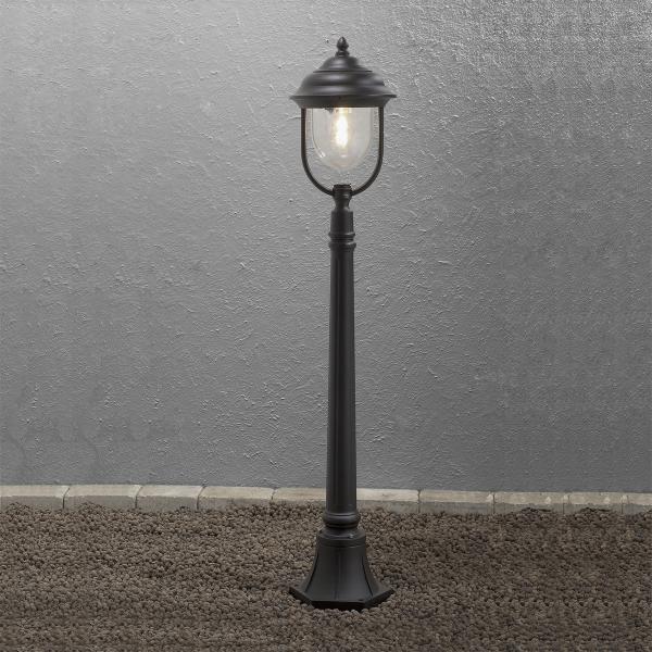 Die KONSTSMIDE Außenwegeleuchte Parma vereint nostalgisches Design im Landhausstil mit moderner Funktionalität. Mit einer Höhe von 118 cm und einem Durchmesser von 24 cm aus hochwertigem, schwarz lackiertem Aluminium und klarem Acrylglas, ist sie ideal für die Beleuchtung von Terrassen, Gärten oder Eingangsbereichen. Die Leuchte ist wetterfest (IP43) und dimmbar, abhängig von der verwendeten Lichtquelle.