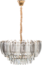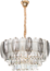 Glamouröser Kronleuchter CANAGUA aus Glas und Messing, der Eleganz und Raffinesse vereint. Mit rauchigen und matten Glaselementen in Federformen sowie funkelnden Kristalltropfen schafft er ein einzigartiges Design. Auf einem messingfarbenen Metallgestell aufgehängt, bringt er Boho-Glamour in moderne Esszimmer und sorgt für einen stilvollen Charakter.