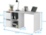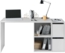 Modularer Schreibtisch mit vier niedrigen Regalen, von denen zwei durch Flügeltüren geschlossen werden können. Er bietet die Möglichkeit der Eckmontage und ist ideal für moderne Büros oder Heimbüros. Mit seinen praktischen Fächern sorgt er für Ordnung und ist aus stoß- und kratzfestem Laminat gefertigt. Die Maße betragen 152 x 74 x 49 cm im linearen Aufbau und 120 x 74 x 77 cm im Eckaufbau.