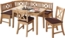Eine umfangreiche Ausstattung für deinen Essbereich bietet die zeitlose Eckbankgruppe. Sie setzt auf ein klassisches Design und überzeugt in ansprechender Holzoptik. Eckbank und Stühle verfügen über ein Sitzkissen mit Schaumstoffpolsterung, womit sie dir einen angenehmen Komfort ermöglichen. Der Bezug zeichnet sich durch eine pflegeleichte Qualität aus und ist einfach zu reinigen. Abgerundet wird die zeitlose Essgruppe durch einen hochwertigen Tisch mit stabilem Gestell. Durch die praktische Einlegeplatte kannst du das Platzangebot ganz leicht erweitern. Für die Fertigung der pflegeleichten Esszimmermöbel wurde FSC®-zertifiziertes teilmassives Holz eingesetzt. Bringt Gemütlichkeit in dein Zuhause.