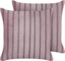Weiches, rosafarbenes Zierkissen 2er Set mit dekorativen Streifen. Hochwertiger Samtstoff auf der Vorderseite und strapazierfähige Baumwolle auf der Rückseite. Handgefertigtes Blockdruckmuster für Einzigartigkeit. Maße: 45 x 45 x 10 cm. Perfekt für Wohn- und Schlafbereiche. Pflegeleicht und langlebig.