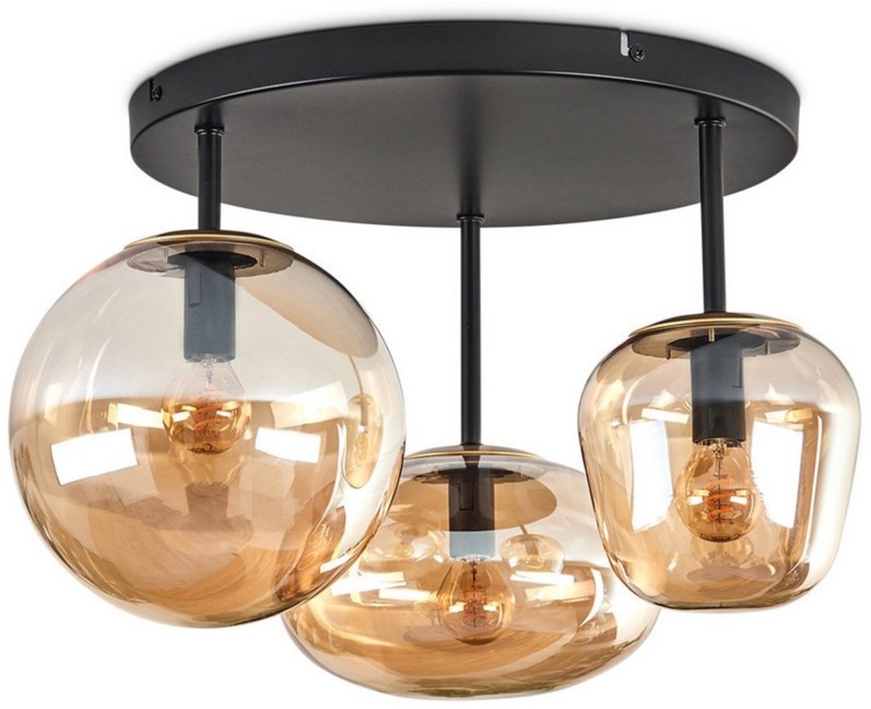 Die Hofstein Deckenleuchte vereint modernes Design mit Funktionalität. Die Leuchte aus schwarzem Metall und bernsteinfarbenem Glas sorgt für eine stilvolle Beleuchtung in Ihrem Innenbereich. Mit einer Breite und Länge von jeweils 49 cm und Platz für drei E14-Leuchtmittel (nicht im Lieferumfang enthalten) ist sie ideal für Esszimmer, Flur, Schlafzimmer oder Wohnzimmer.