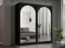 Kleiderschrank Mezzinto 200 in Schwarz bietet mit seinen großzügigen Abmessungen von 200 x 216 x 65 cm viel Stauraum. Der Schrank ist aus einer 16 mm Laminatplatte gefertigt und verfügt über einen Rücken aus HDF-Platte. Das Schiebetürsystem LAGUNA und die Kunststoffgriffe sorgen für eine moderne Optik. Zusätzlich ist der Schrank mit einer Kleiderstange und einem 3 mm Frontspiegel ausgestattet.
