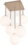Die my home Pendelleuchte Nymölla überzeugt durch ihr stilvolles Design mit fünf Glaskugeln, die an starren Metallpendeln in warmem mattem Beige hängen. Diese sind in unterschiedlichen Höhen angeordnet und schaffen ein harmonisches Zusammenspiel aus Form, Farbe und Licht. Der quadratische Baldachin aus Metall hat die Maße 35x35 cm und ergänzt das Gesamtbild perfekt. Ideal für moderne Wohnkonzepte mit einem Hauch von Retro-Flair.