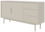 Das Selsey Sideboard VIVIARO ist die perfekte Kombination aus modernem Design und praktischer Funktionalität. Mit einer Höhe von 82 cm, einer Breite von 154 cm und einer Tiefe von 39 cm bietet es ausreichend Stauraum in Form von drei geräumigen Schubladen. Hergestellt aus kratzfester, laminierter Spanplatte in Kaschmir 5981 BS, ist es sowohl robust als auch pflegeleicht. Die goldfarbenen Griffe und stabilen Holzbeine verleihen dem Sideboard eine zeitlose Eleganz.