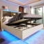 Merax Polsterbett, 140 × 200 cm Doppelbett, mit LED-Lichtleiste, hydraulischer Stauraum, Staufächer, schwebendes Design, USB- und Typ-C-Anschlüsse, Leinen, beige