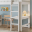 Das Hochbett mit Schreibtisch und Schubladenschrank bietet eine praktische Lösung für Kinder- und Jugendzimmer. Mit einer Liegefläche von 90 x 200 cm und einem umlaufenden Rausfallschutz sorgt es für Sicherheit und Komfort. Der untere Bereich kann als Arbeitsraum genutzt werden, während Regale und Schubladen großzügigen Stauraum bieten. Das Bettgestell aus Massivholz und der Lattenrost aus Sperrholzplatte garantieren hohe Stabilität und modernes Design.
