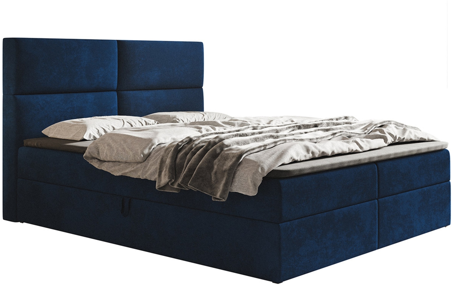 Das AX LIVING Boxspringbett Bonio III in Blau bietet höchsten Schlafkomfort auf einer Liegefläche von 140x200 cm. Mit einer Breite von 140 cm, einer Höhe von 112 cm und einer Tiefe von 214 cm ist es ideal für kleinere Schlafzimmer oder Gästezimmer. Der integrierte Bettkasten sorgt für zusätzlichen Stauraum, während der Bonnell-Federkern mit Topper für optimalen Liegekomfort sorgt. Die hochwertige Konstruktion aus Möbelplatte und strapazierfähigem Stoff garantiert Langlebigkeit und ansprechende Optik.