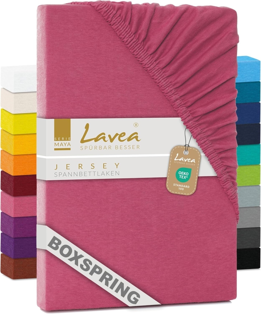 Lavea Spannbettlaken Maya, in Gr. 60x140, 90x200, 120x200, 140x200, 180x200 oder 200x220 cm, Baumwolle, Gummizug: rundum, (1 Stück), Jersey Spannbetttuch für Topper, Boxspring- und Wasserbetten