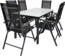 Highlights Tisch:- Tisch-Maße ca. H. 76 x B. 140 x T. 80 cm- Alu-Farbe: Anthrazit- Tischplatte aus ESG-Sicherheitsglas Highlights Stühle:- Stuhl-Maße ca. H. 105 x B. 56 x T. 65 cm - Alu-Farbe: Anthrazit- Stühle platzsparend zusammenklappbar- 3-fach verstellbare Rückenlehnen Die textilene Sitzgruppe wird mit einem Tisch 140 x 80 cm und bequemen Klappstühlen geliefert. Die Möbel bestehen aus sehr hochwertigem Aluminium und sind damit äußerst wetter- und UV-beständig. Der robuste Tisch hat eine Platte aus Sicherheitsglas. Armlehnen und verstellbare Rückenlehnen spenden zusätzlichen Komfort. Bei Nichtgebrauch können die Stühle platzsparend zusammengeklappt werden. VCM hat sich seit den 70er-Jahren auf die Konstruktion, Produktion und Vertrieb von Möbeln mit einem fairen Preis/Leistungsverhältnis spezialisiert und damit bereits Millionen Haushalte verschönert.