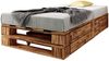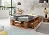 Das sunnypillow Palettenbett M2 aus 100% Nadelholz bietet eine Liegefläche von 120x200 cm und ist ideal als Seniorenbett, Kinderbett, Jugendbett oder Gästebett geeignet. Mit einer Belastbarkeit von ca. 500 kg garantiert es Stabilität und Sicherheit. Zwei praktische Bettkästen mit Gummirädern sorgen für zusätzlichen Stauraum und schonen den Fußboden. Die Montage ist einfach und dauert nur ca. 25 Minuten.