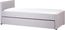 Praktisches Tagesbett MARMANDE in hellgrauer Leinenoptik mit ausziehbarer Liegefläche und zwei stabilen Lattenrosten. Ideal für Gäste- oder Kinderzimmer, lässt sich das Bett mit einem Handgriff erweitern und bietet zusätzlichen Schlafplatz. Der moderne Stoffbezug sorgt für Komfort und passt zu jeder Einrichtung.
