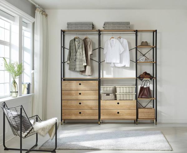 Regal-Set ADENAU in schwarz inkl. 2 breite Regale, 1 schmales Regal, 6 Schubladen, T30 x B210 x H210 cm Bild 1