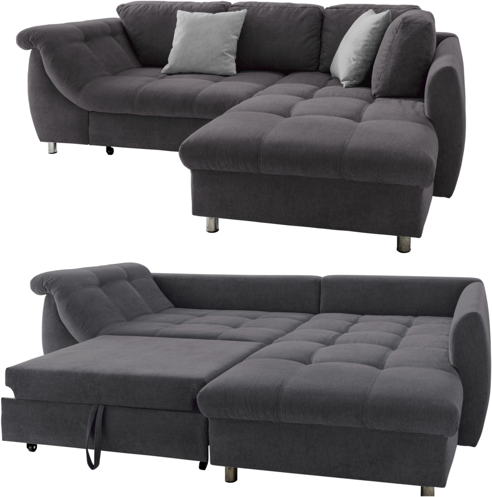 Ecksofa Schlafcouch L-Garnitur Bettkasten Ottomane rechts Mikrofaser Anthrazit