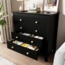 Die SOFTWEARY Schubkastenkommode ist ein moderner Mehrzweckschrank mit fünf praktischen Schubladen. Mit einer Breite von 79 cm, einer Tiefe von 40 cm und einer Höhe von 81 cm bietet sie ausreichend Stauraum. Die Kommode ist aus Holzspanplatte gefertigt und verfügt über elegante goldene Knopfgriffe aus Stahl. Sie ist einfach zu montieren und hat eine maximale Belastbarkeit von 50 kg.