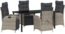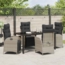 Dieses verstellbare Garten-Dining-Set von vidaXL in Hellgrau aus Poly-Rattan bietet eine moderne und stilvolle Lösung für Ihr Ess- und Entspannungserlebnis im Freien. Mit einem pulverbeschichteten Stahlrahmen und bequemen, abnehmbaren Kissen ist es ideal für Gärten und Terrassen. Die verstellbaren Fußstützen und die Glasplatte sorgen für zusätzlichen Komfort und eine ansprechende Optik.
