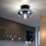 Diese stilvolle Deckenleuchte überzeugt durch ihr elegantes Design und die Kombination aus schwarzem Metall und rauchigem Glas. Sie verfügt über eine E27 Fassung, die eine maximale Leistung von 40 Watt unterstützt, sodass Sie die Lichtfarbe und Helligkeit nach Ihren Wünschen wählen können. Die runde Deckenbefestigung hat einen Durchmesser von 18 cm und die Leuchte hat eine Höhe von 13 cm.