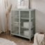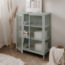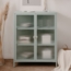 Die Vitrine II Milton in Mintgrün vereint modernes Design mit praktischer Funktionalität. Hergestellt aus Holzwerkstoff, Glas und Stahl, bietet sie mit zwei Glasrahmentüren und zwei Einlegeböden ausreichend Stauraum. Die eleganten Metallgriffe in Gold und die Stahlfüße verleihen der Vitrine einen stilvollen Akzent.
