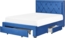 Luxuriöses Polsterbett LIEVIN in marineblau mit Bettkasten (140 x 200 cm). Dieses elegante Samtbett im Chesterfield-Look vereint glamouröse Ausstrahlung mit praktischem Stauraum durch drei rollbare Schubladen. Der hochwertige Samtstoff sorgt für Langlebigkeit und angenehme Haptik. Das hohe, gepolsterte Kopfteil ermöglicht bequemes Anlehnen, während der Massivholz-Lattenrost für erholsame Nächte sorgt.