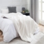 Wohndecke Kuscheldecke 150 x 200 cm in Weiß, gefertigt aus weichem Fleece. Diese luxuriöse, dicke Decke mit gestreiftem Muster bietet Ihnen an kalten Tagen Wärme und Geborgenheit. Ideal zum Einkuscheln auf dem Sofa oder beim Lesen im Bett, sorgt sie für ein behagliches Ambiente in Ihrem Zuhause.