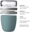 Mepal Mepal Ellipse Nordic Blue Lunchpot Mini Der Lunchpot Ellipse mini in Nordic blue ist ideal für den Transport von zum Beispiel Joghurt und Müsli oder Cerealien. Zwei praktische Behälter, in einer kompakten Einheit zusammengefasst. In den beiden Behältern können zwei unterschiedliche Komponenten einer Speise getrennt voneinander und vor allem auslaufsicher transportiert werden. Mit seiner Größe ist der Lunchpot Ellipse mini ideal für einen kleinen Snack zwischendurch oder für Schulkinder, die den Lunchpot ganz einfach mit in die Schule nehmen können. Der Inhalt des oberen, transparenten Behälters beträgt 120 ml, d.h. dort ist Platz für ca. 50 g Müsli oder Obst. Das Volumen bzw. der Inhalt des unteren Behälters bietet mit 300 ml Inhalt. Beide Behälter bestehen aus nachhaltigem Material, sind spülmaschinenfest und 100% BPA-frei. Marke: Mepal 100% auslaufsicher Ein praktischer Suppenbecher, Joghurtbecher oder Müslibecher to go Geeignet für Gefrierschrank, Mikrowelle und Geschirrspüler 2 Behälter: 300 ml (mikrowellengeeignet) und 120 ml Inhalt Ideal dazu: der passende faltbare Löffel BPA-frei
