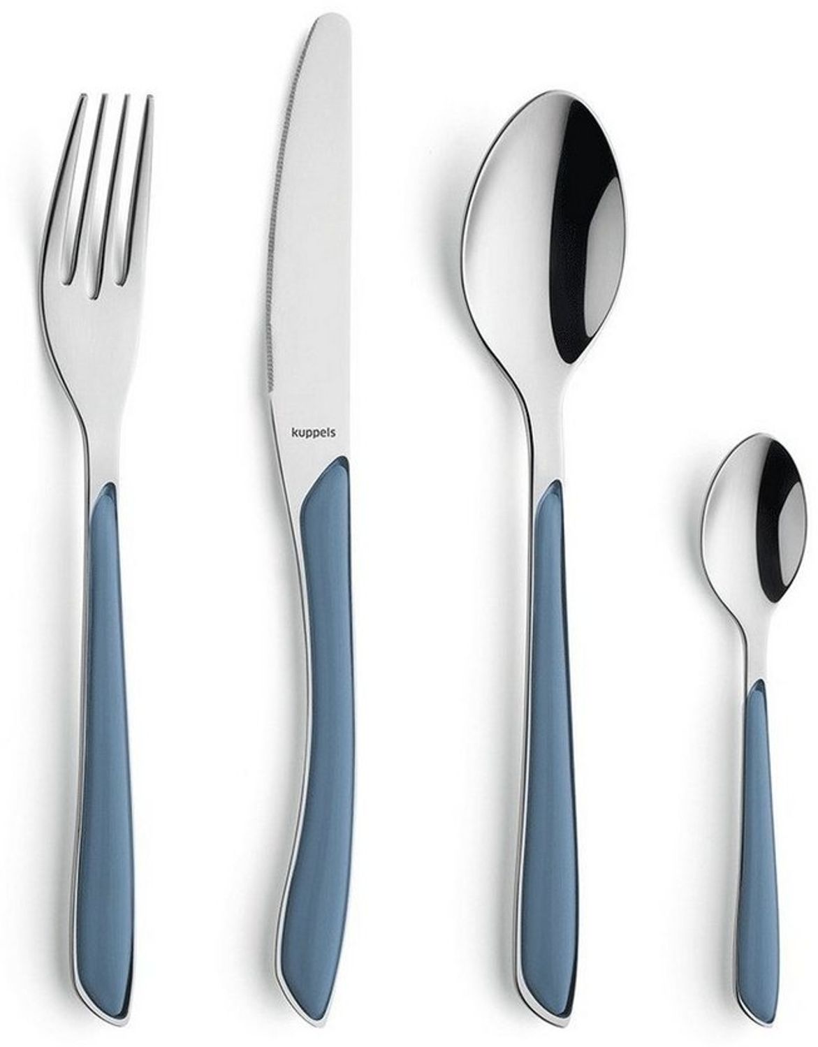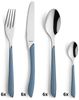 Das Besteckset "Prisma denim blau" ist für 6 Personen geeignet und besteht aus 6 Menümessern, 6 Menügabeln, 6 Menülöffeln und 6 Kaffeelöffeln. Hergestellt aus gehärtetem Klingenstahl 13/0 (Messer), Edelstahl 18/0, hochglanzpoliert, mit Kunststoffgriff. Spülmaschinengeeignet und wird im Geschenkkarton geliefert.