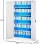 Die Abmessungen des Aktenschranks betragen 195 x 90 x 40 cm (Höhe x Breite x Tiefe). Der Schrank ist pulverbeschichtet in der Farbe weiß/weiß (RAL: 9003).