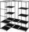 Dieser praktische Eckkleiderschrank in Schwarz bietet eine ideale Aufbewahrungslösung für Ihre Kleidung und Schuhe. Mit einem stabilen Eisenrahmen ist er besonders langlebig und optimiert die Nutzung der Ecke, wodurch viel Stauraum und Aufhängeoptionen zur Verfügung stehen. Der Stoffüberzug mit Reißverschlüssen schützt Ihre Kleidung vor Schmutz und Staub.