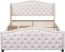 Polsterbett 212.5*146*100 cm, mit hohem Kopfteil 100 cm, weißes Kunstleder Samtbett,inklusive Taschenfederkern