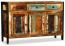 Dieses Sideboard im Antik-Stil aus massivem Altholz bietet mit drei Schubladen und drei Fächern reichlich Stauraum für Ihre persönlichen Gegenstände. Die handgefertigte Anrichte vereint die Eigenschaften verschiedener Holzarten wie Mahagoni, Teak und Akazie und besticht durch ihre Stabilität und Langlebigkeit. Jedes Stück ist ein Unikat mit einzigartigen Gebrauchsspuren, die den Vintage-Look unterstreichen. Die Montage ist einfach und das Möbelstück kann sicher an der Wand befestigt werden.