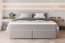 Das 99rooms 'Phönix' Boxspringbett in Hellgrau vereint elegantes Design mit hohem Komfort. Mit einer Liegefläche von 200 x 200 cm und einer Liegehöhe von 50,5 cm bietet es optimalen Schlafgenuss. Der Taschenfederkern-Matratzenkern und der Kaltschaum-Topper sorgen für eine angenehme Nachtruhe. Das moderne Kopfteil mit einer Höhe von 99 cm und Kunststofffüßen in Chromoptik verleiht dem Bett einen stilvollen Akzent.