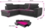 • Ecksofa mit Ausziehsystem des Typs Delfin – das bedeutet, das mit Hilfe eines herausziehbaren Wagens mit Matratze die Schlaffunktion erschaffen wird (die Matratze ist an den Wagen befestigt)