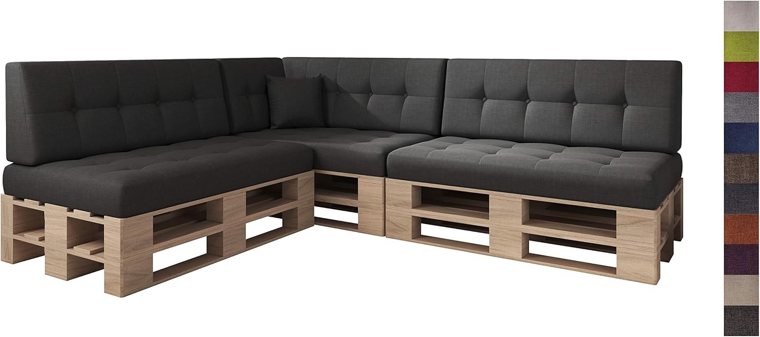 sunnypillow Palettenkissen Kaltschaum Palettenauflage Palettenpolster Palettensofa Sitzkissen Rückenlehne gesteppt 8er Set Black