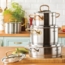 Verleihen Sie Ihrer Küche einen Hauch von Eleganz und Funktionalität mit dem 8-teiligen Korkmaz Proline Topfset in Gold-Optik. Aus hochwertigem 18/10 Edelstahl gefertigt, bietet dieses Set alles, was Sie für professionelles und gesundes Kochen benötigen – ob auf Gas-, Elektro-, Keramik- oder Induktionsherd. Technische Daten Marke: Korkmaz Serie: Proline Modellnummer: A1148 Material: 18/10 Cr-Ni Edelstahl Griffe: Edelstahl, ergonomisch, goldfarben beschichtet, wärmeisoliert Deckel: Glasdeckel mit Edelstahlknauf (goldfarben) Boden: 11 mm starker Superkapselboden mit Solarbase-Technologie Geeignet für: Alle Herdarten inkl. Induktion Oberfläche innen: Hochglanzpoliert Oberfläche außen: Edelstahl poliert Set-Inhalt & Maße Kleiner Kochtopf: 16 × 10 cm → 2,0 Liter Mittlerer Kochtopf: 20 × 12,5 cm → 4,0 Liter Großer Kochtopf: 24 × 14 cm → 6,3 Liter Flacher Kochtopf: 24 × 7 cm → 3,1 Liter Deckelanzahl: 4 Glasdeckel je passend Vorteile auf einen Blick Gesundes Kochen: Aus hygienischem Edelstahl – geschmacksneutral und rostfrei Goldene Details: Veredelte Griffe und Knäufe für ein luxuriöses Erscheinungsbild Schnelle Wärmeverteilung: Superkapselboden mit Aluminiumkern für gleichmäßiges Garen Energieeffizient: Hohe Wärmeleitung spart Zeit und Strom – auch bei geringer Hitze Sicher & komfortabel: Ergonomische Griffe, die sich beim Kochen nicht erhitzen Deckel mit Dampfstopp: Hält die Hitze im Topf und sorgt für saftige Ergebnisse Langlebig & pflegeleicht: Spülmaschinengeeignet und resistent gegen Verfärbungen Für alle Herdarten geeignet: Einschließlich Induktion und Halogen