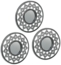 Verschönern Sie Ihre Wände mit diesem dekorativen 3er Set Zierspiegel. Die Spiegel verfügen über verzierte Kunststoffrahmen in Silber und Anthrazit und passen perfekt in jeden Raum. Dank der rückseitigen Aufhängung sind sie schnell montiert. Die Gesamtmaße betragen ca. 25 x 1,5 cm, der Spiegeldurchmesser liegt bei ca. 9,5 cm. Jedes Stück wiegt ca. 120 g und besteht aus PP-Kunststoff und Glas.