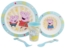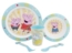 Das Peppa Pig Teller-Set „Peppa Core 2022“ ist ein 5-teiliges Kindergeschirr, das Spaß und Farbe an den Esstisch bringt. Es umfasst einen Teller, eine Schale, einen Becher (Tumbler) sowie Besteck (Löffel & Gabel). Hergestellt aus widerstandsfähigem Polypropylen (PP) ist es bruchsicher und ideal für kleine Kinderhände. Das Geschirr ist mikrowellengeeignet und lässt sich leicht reinigen, was es besonders praktisch für den Alltag macht.