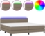 Das vidaXL Polsterbett mit Matratze und LED-Beleuchtung in Taupe, 200x200 cm, ist der Mittelpunkt für erholsamen Schlaf. Der strapazierfähige Stoff ist atmungsaktiv und langlebig. Das höhenverstellbare Kopfteil dient als bequeme Rückenlehne. Die bunten LED-Lichter sorgen für eine verspielte Atmosphäre. Die Taschenfederkernmatratze absorbiert Geräusche und Stöße. Die hautfreundliche Matratzenauflage bietet zusätzlichen Komfort.