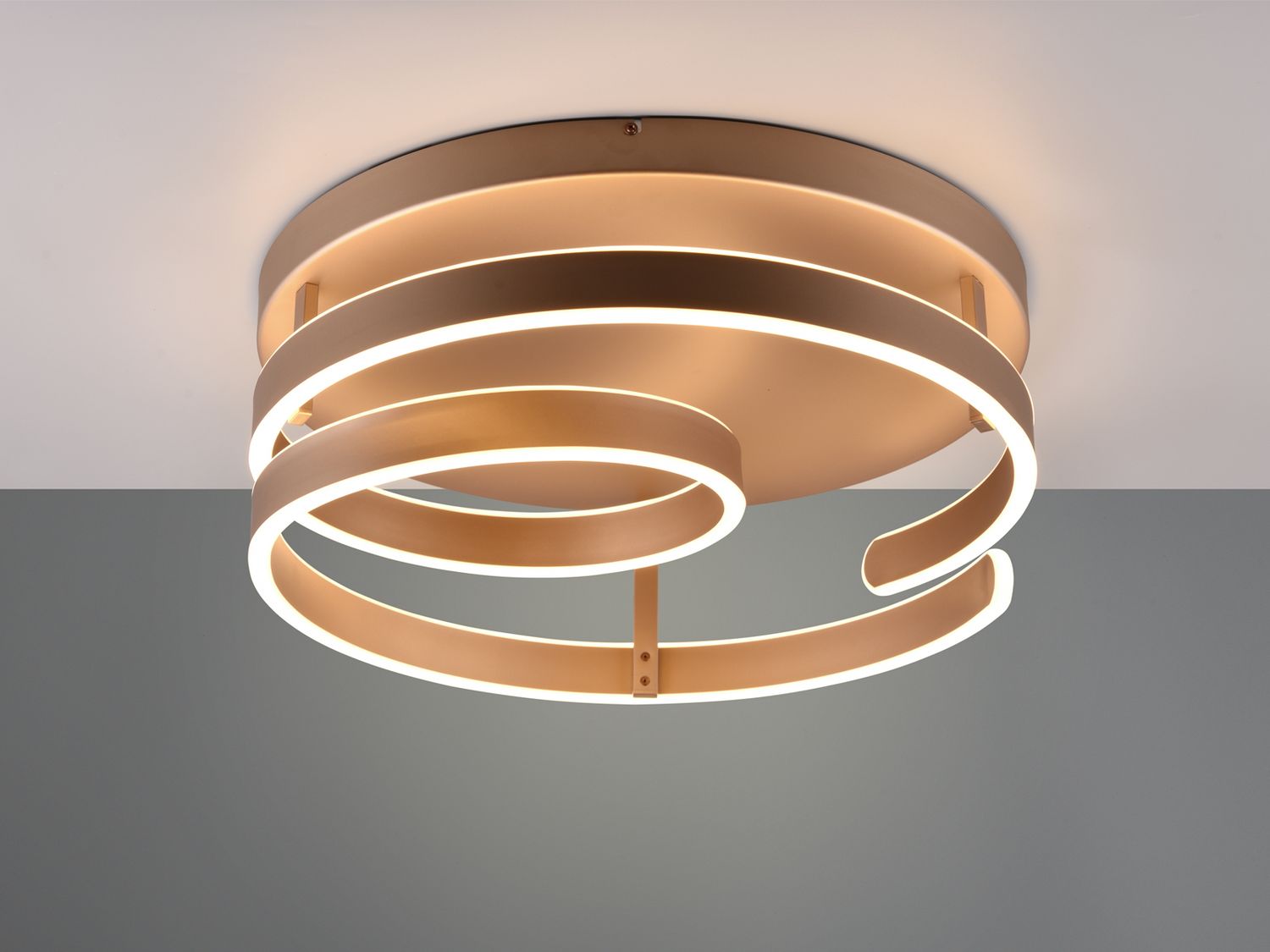 Die große LED Deckenleuchte MARNIE von Trio Leuchten überzeugt mit ihrem modernen Design in Coffee und einem Durchmesser von 55 cm. Mit einem fest verbauten LED Modul von 58 Watt und 6.800 Lumen sorgt sie für eine effiziente Beleuchtung. Die Leuchte ist dimmbar in drei Stufen über einen herkömmlichen Lichtschalter, was sie ideal für verschiedene Einsatzbereiche wie Wohnzimmer, Schlafzimmer oder Flur macht.