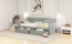Dieses kompakte Einzelbett in modernem Grau kombiniert platzsparendes Design mit praktischem Stauraum und ist ideal für Kinder- oder Jugendzimmer. Das Massivholzbett mit den Maßen 90x200 cm verfügt über zwei integrierte Schubladen, die zusätzlichen Platz für Bettwäsche, Kleidung oder Spielzeug bieten. Die robuste Konstruktion aus Kiefernholz mit 15 stabilen Latten gewährleistet eine Tragfähigkeit von 120 kg.
